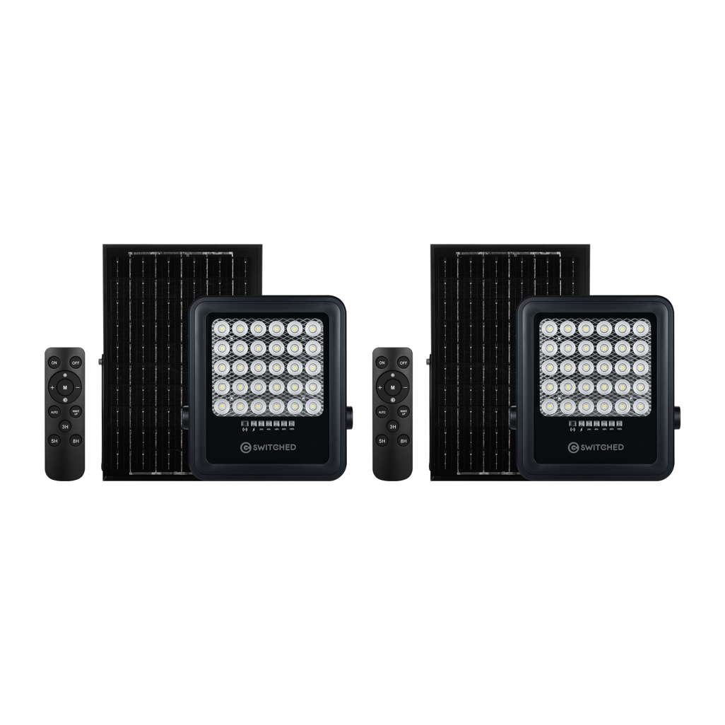 2 x SWITCHED 100W Solar Floodlights with Remotes | Outdoor Security Lighting | Namiri Tech. Get maximum outdoor coverage with this 2-pack of SWITCHED 100W Solar Floodlights with remotes. Ideal for security lighting, driveways, and large spaces. Shop now at Namiri Tech.